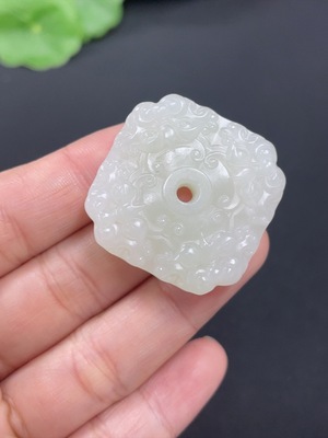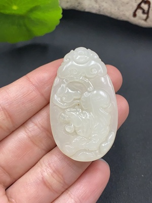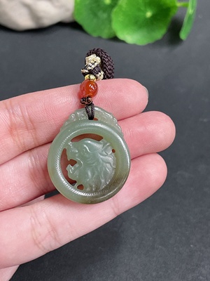 H30546097 Hetian Jade Pendant, Auspicious Beast Ring, Total Weight Approx. 11.4g
