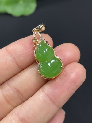 H39546579 Hetian Jade Jasper Inlaid Gourd 18k Gold Total Weight Approx. 2.7g With Diamond Accents