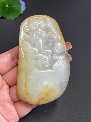 H33925611 Hetian Jade Pendant, Auspicious Beast, Undetermined Skin Color Origin, Contains Other Mineral Components, Total Weight Approximately 63.5g