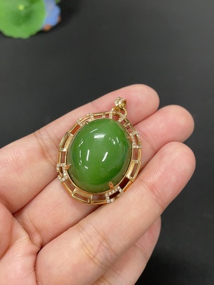 H37457689 Hetian Jade Inlaid Pendant, Total Weight Approx. 14.8g, 18k Gold with Diamond Accents