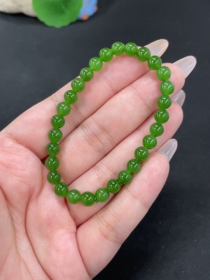 H38539613 Hetian Jade Jasper Bracelet, approx. 6mm beads, total weight approx. 9.8g