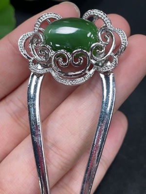 H31634963 Hetian Jade Inlaid Hairpin Non-Gold Total Weight Approx. 18.3g