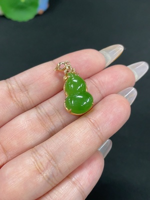 H39606062 Hetian Jade Jasper Inlaid Pendant Gourd Total Weight Approx. 3.4g 18k Gold with Diamond Accents