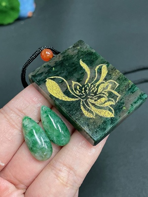 H24804501 Dushan Jade Pendant Cabochon With Other Mineral Components Total Weight Approx. [Including String]34.3g