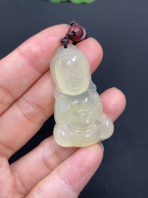 H38490520 Xiuyu (Serpentine Jade) Pendant Baby Buddha