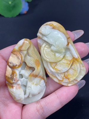H30521990 Xiuyu (serpentine jade) pendant rabbit