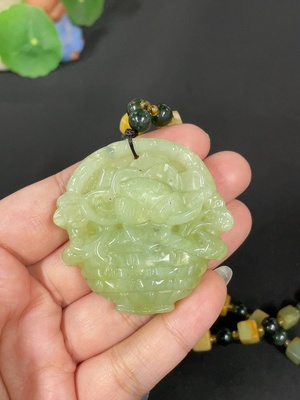 H37408588 Xiuyu (Serpentine Jade) Pendant - Blossoming Prosperity