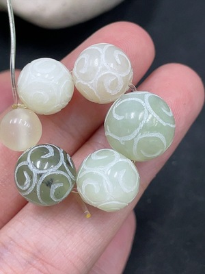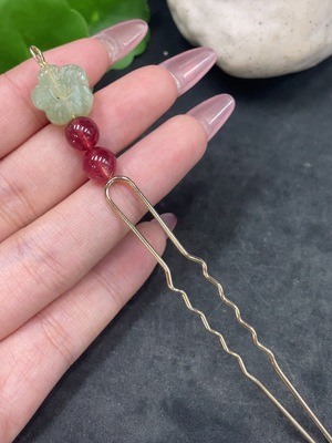 H33885791 Xiuyan jade (serpentine jade) inlaid hairpin with beads (non-Hetian jade, non-gold), total weight approx. 4.8g