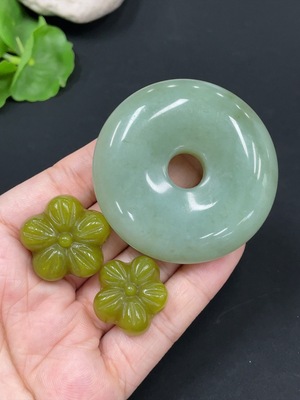 H34036829 Xiuyu (serpentine jade) pendant, safety buckle, total product weight approximately 14g