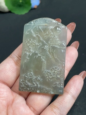 H34054231 Xiuyu (serpentine jade) pendant landscape total weight: approx. 38.9g
