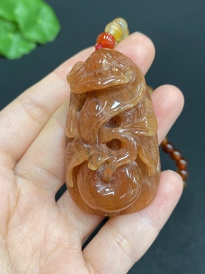 H32705899 Xiuyu (Serpentine Jade) Pendant - Abundance Every Year + Rooster
