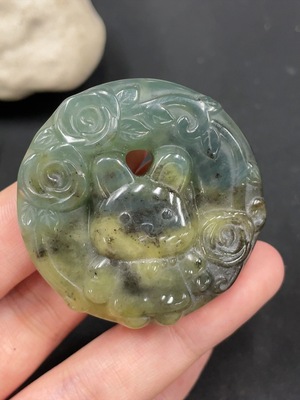 H30521990 Xiuyu (serpentine jade) pendant rabbit