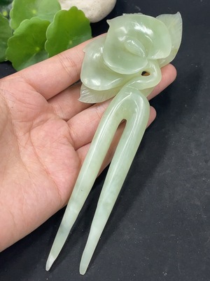 H30537721 Xiuyu (serpentine jade) hairpin containing other mineral components, total weight approximately 74.3g