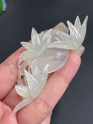 H29358980 Xiuyu (Serpentine Jade) Pendant - Lotus and Fish Symbolizing Abundance - Total Weight Approx. 39.8g