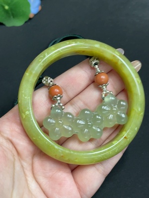 H29423060 Xiuyu (Serpentine Jade) Pendant Gourd Blossoming Wealth