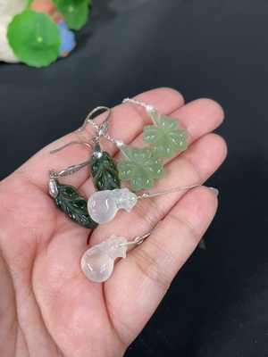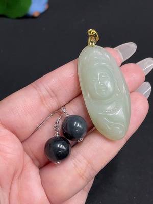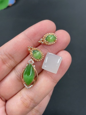 H38505957 Hetian Jade ring face + inlaid pendant + earrings total weight about 6g non-gold