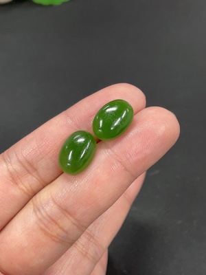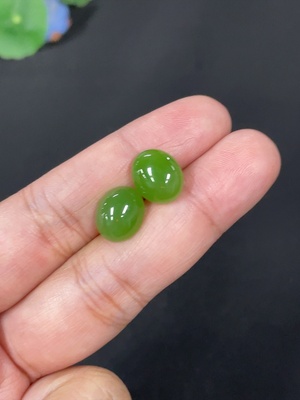 H36280165 Hetian Jade Cabochon Earrings with 18k Gold Setting, Total Weight Approx. 2g