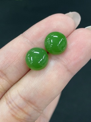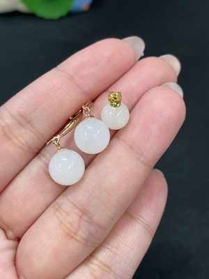 H37427563 Hetian Jade Earrings, Approx. 7.9mm, Total Weight Approx. 1.5g, Non-Gold, Only Large Bead, Accent Beads Not Hetian Jade