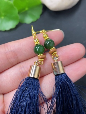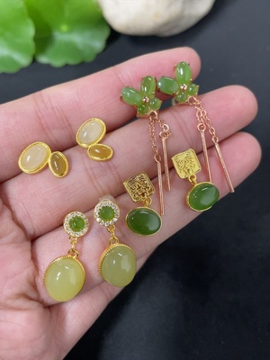 H38529867 Hetian Jade Jasper Bead Inlaid Earrings