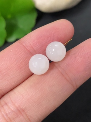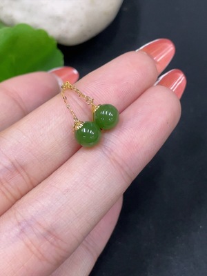H37438030 Hetian Jade Bead Earrings, Approx. 7.8mm, 18k Gold, Total Weight Approx. 1.4g, Contains Other Mineral Components