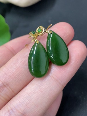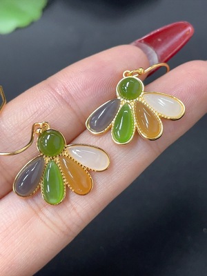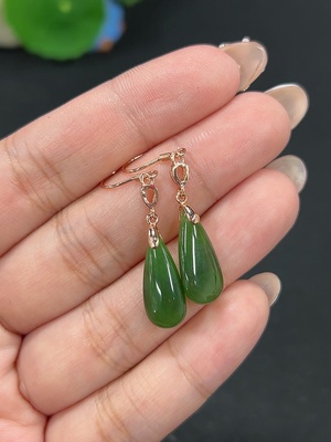H40703614 Hetian Jade Inlaid Earrings Drop Total Weight About 2.8g Non-Gold