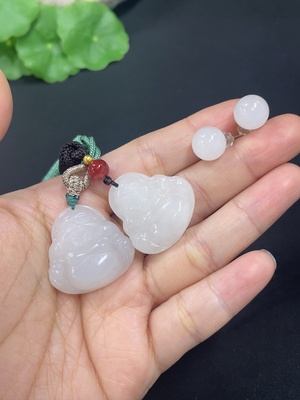 H39619256 Hetian Jade Pendant Buddha Bead Earrings Non-Gold Inlaid
