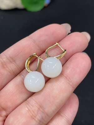 H38470288 Hetian Jade Bead Earrings, Approx. 11mm, 70% Gold Content Main Body, Rest 18k Gold, Total Weight Approx. 5g (Including Ear Studs)