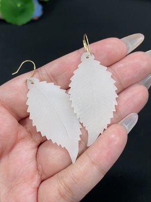 H39573381 Hetian Jade Leaf Earrings, 18K Gold, Total Weight Approx. 8.3g