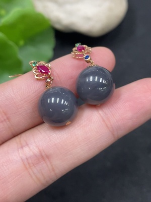 H35185973 African Emerald (Dulong Jade) Inlaid Earrings