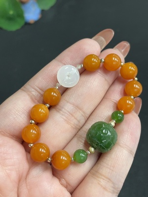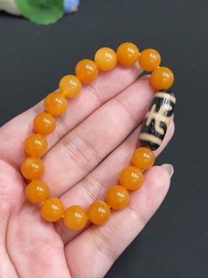 H36236538 Yellow Dragon Jade Bracelet, approx. 9.2mm beads, total weight about 22.4g, non-Yellow Dragon Jade accessory beads