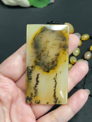 H35113654 Yellow Dragon Jade Handheld Carving "Dominating the World" (with non-Yellow Dragon Jade beads, total weight approx. 124.3g including cord)