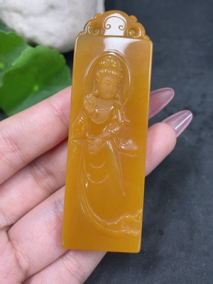 H32824311 Yellow Dragon Jade Pendant - Guanyin, Total Weight Approx. 39.5g