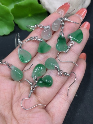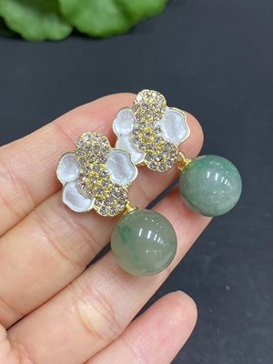 H35084309 African Emerald (Dulong Jade) Earrings Non-Gold Inlaid Total Weight Approx. 10.3g