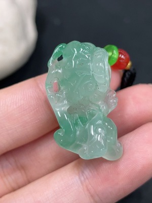 H30561646 African Emerald (Dulong Jade) Pendant Pixiu with Non-Dulong Jade Beads, Total Weight Approx. 9.8g (Including Cord)