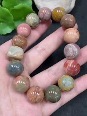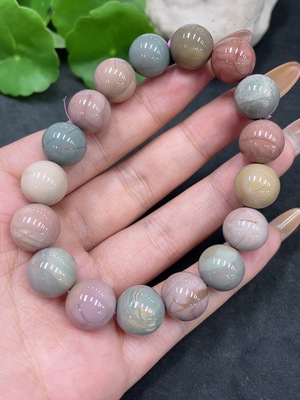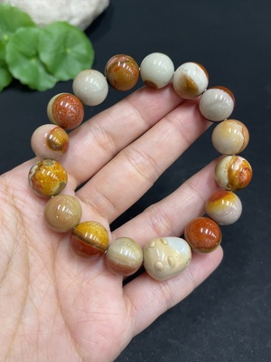 H35147558 Alashan Agate Bracelet Approximately 10.4mm with Other Mineral Components Total Weight About 30.4g
