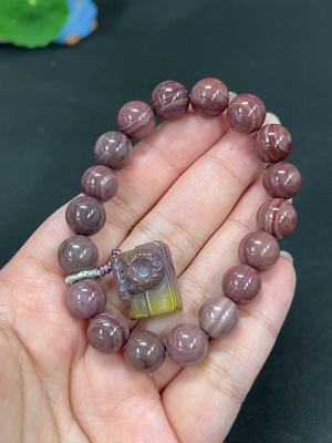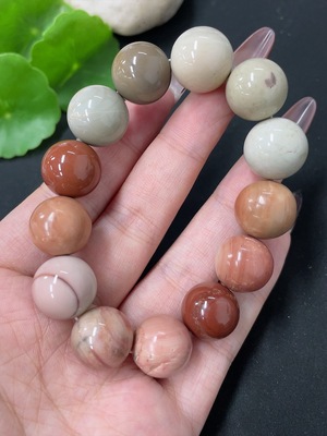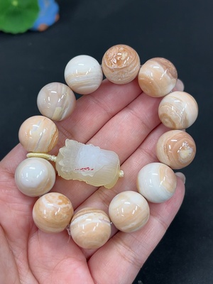 H37350487 Alashan Agate Bracelet, approximately 12.2mm, containing other mineral components, total weight about 45.9g