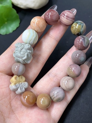 H37437205 Alashan Agate Bracelet, approximately 9mm, containing other mineral components, total weight about 24.1g