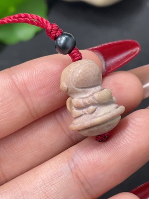 H36295514 Alashan Agate Handheld Piece - Bodhidharma with Non-Alashan Agate Beads Containing Other Mineral Components, Total Weight Approximately (Including String) 174.2g