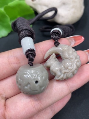H34061836 Alashan Agate Pendant - Nine-Tailed Fox + Antique Style, Contains Other Mineral Components, Matching Beads Not Alashan Agate, Total Weight Approximately (Including Cord) 27.2g