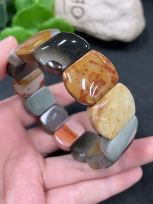 H34063312 Alashan Agate Bracelet with Other Mineral Components, Total Weight Approximately 56.9g