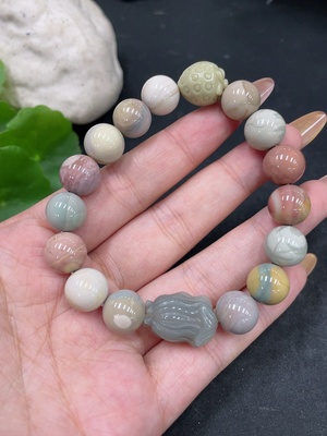 H33896553 Alashan Agate Bracelet, approximately 8.7mm, containing other mineral components, total weight about 19.4g