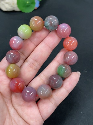 H39573994 Yanyuan Agate Bracelet, approx. 11.2mm beads, total weight approx. 34.4g