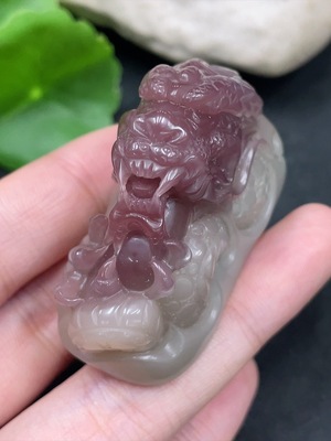 H36226234 Purple-Green Agate Pendant - Dragon Roaming the World