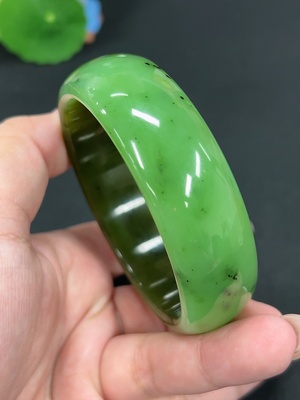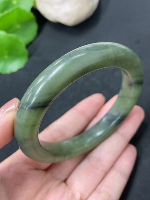 H38507000 Hetian Jade Green Jade Round Bangle Size 55.7 Total Weight Approx. 41.8g