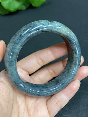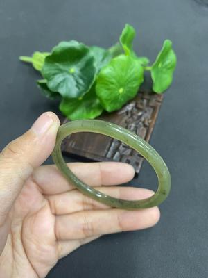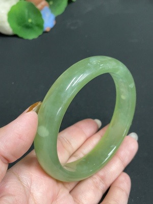 H0921139 Hetian Jade Round Bangle with Grain, Size 50, Total Weight 10.8g