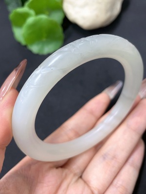 H39672983 Hetian Jade Carved Flower Bracelet Size 59.3 Total Weight Approx. 49g