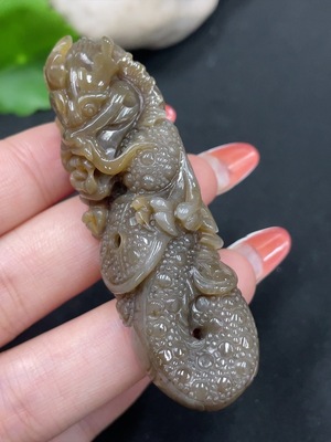H30464823 Hetian Jade Pendant, Chi Dragon
