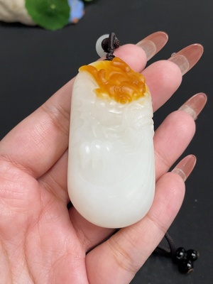 H32812553 Hetian Jade Pendant - Spirit Monkey, Total Weight Approx. 36.1g, Undetermined Skin Color Origin, Contains Other Mineral Components