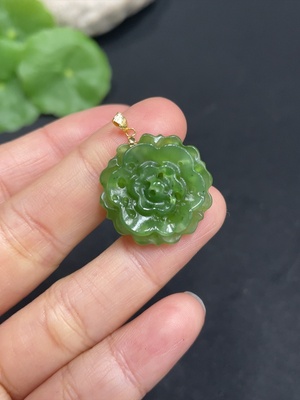 H36270620 Hetian Jade Jasper Pendant Floral Design 18K Gold Clasp Total Weight Approx. 3.2g