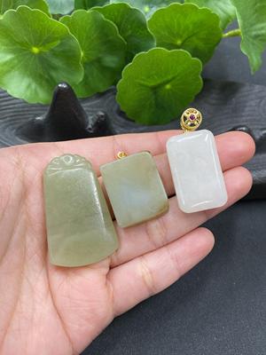 H17879934 Hetian Jade Pendant + Inlaid Pendant Non-Gold Inlaid Total Weight Approx. 8.8g
